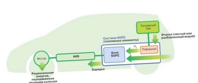 Дополнительная энергетическая совокупность до тех пор пока достаточно массивная, исходя из этого в менее большие модели, тот же Nissan Leaf не поместится. Но, изучения в этом направлении до тех пор пока находятся на ранних этапах. В Nissan рассчитывают, что на серийных электромобилях SOFC-совокупности смогут покажется в ближайшие пять лет, причем для этого не потребуется создавать дополнительную инфраструктуру, потому, что биоэтанол вольно продается уже сейчас.